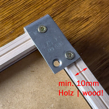 Insert the painting into the frame, position Bigfoot using spacers, and secure with suitable screws. The 3x12 screws supplied for standard applications are too short in this case; 3x20 screws must be used (not included in delivery).