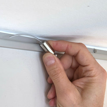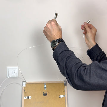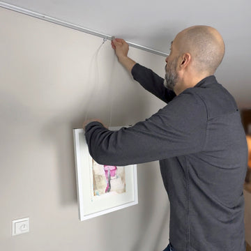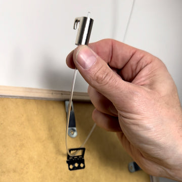 The cable hook is not attached to the picture, but to the gallery rail. The length of the cable can also be adjusted from here.