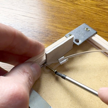 Screw in the 3x25 screws at the markings, ensuring sufficient overhang (approx. 10 mm) so that the attached cable hooks do not protrude beyond the back of the picture.