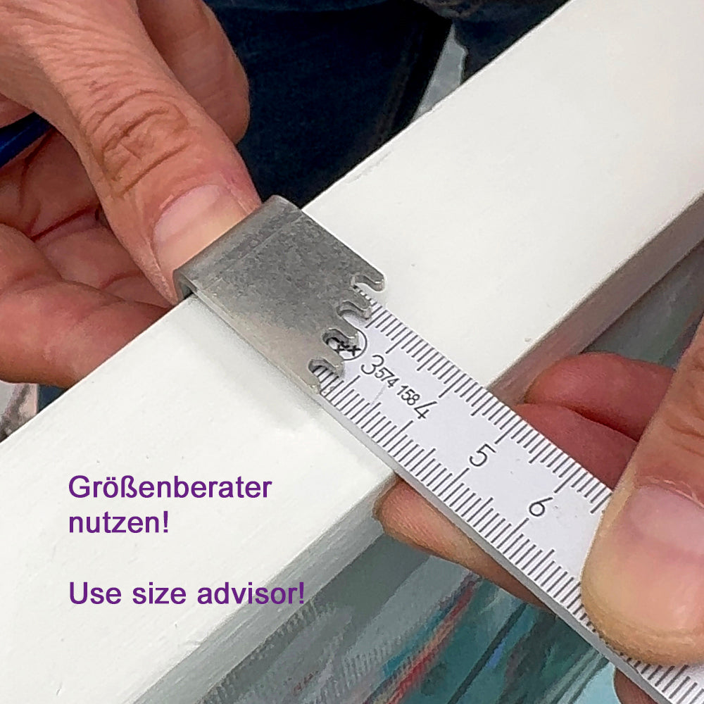 - Suitable for all painting surfaces and wooden frames with at least 10 mm frame edge or stretcher frame profile – also for very thin profiles such as wooden bodies & wooden artpanels.