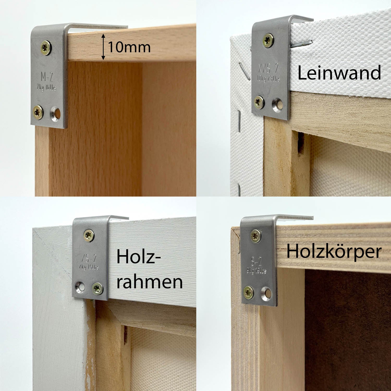 - Geeignet für alle Malgründe und Holzrahmen mit mindestens 10 mm Rahmenkante oder Keilrahmenprofil – auch für sehr dünne Profile wie Casani-Holzkörper & Museo Artpanels.