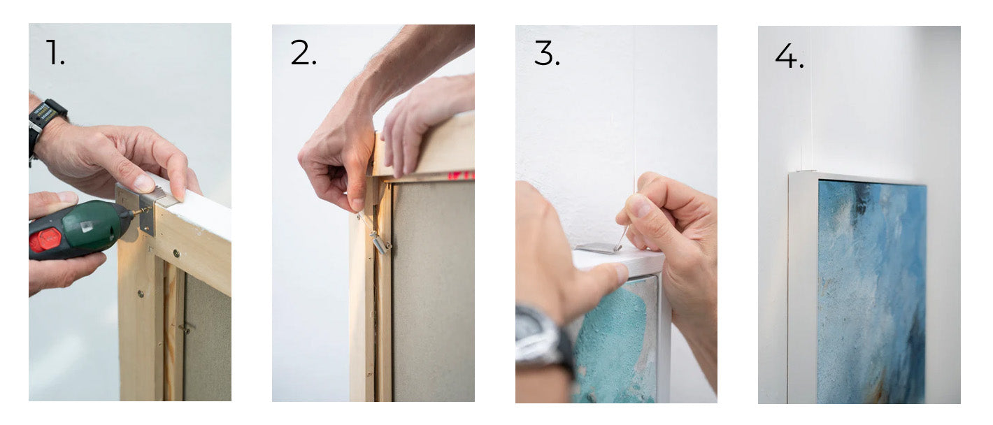 - Keine Schäden an der Sichtseite – die Montage erfolgt ausschließlich auf der Rückseite des Kunstwerks.